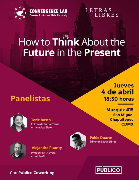 En este Convergence Lab, en alianza con Letras Libres e impulsado por PÚBLICO Coworking, presentaremos ocho reglas para repensar el futuro y cómo la tecnología cambiará nuestras vidas. Acompáñanos para imaginar el futuro junto a Torie Bosch, editora de Future Tense en la revista Slate, Alejandro Pisanty, profesor de química en la UNAM y Pablo Duarte, editor de Letras Libres